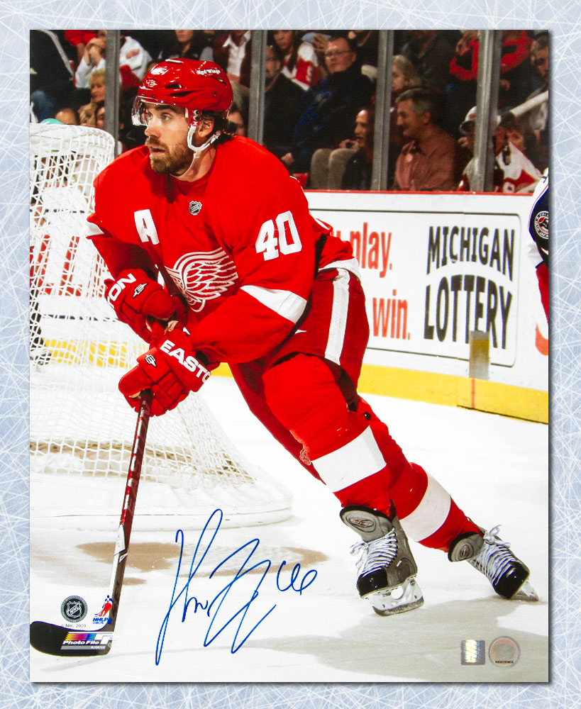 Features- Henrik Zetterberg Detroit Red Wings Autographed Behind Net Photo