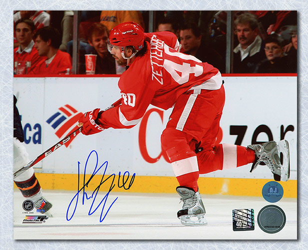 Features- Henrik Zetterberg Detroit Red Wings Autographed Horizontal Shooting Photo