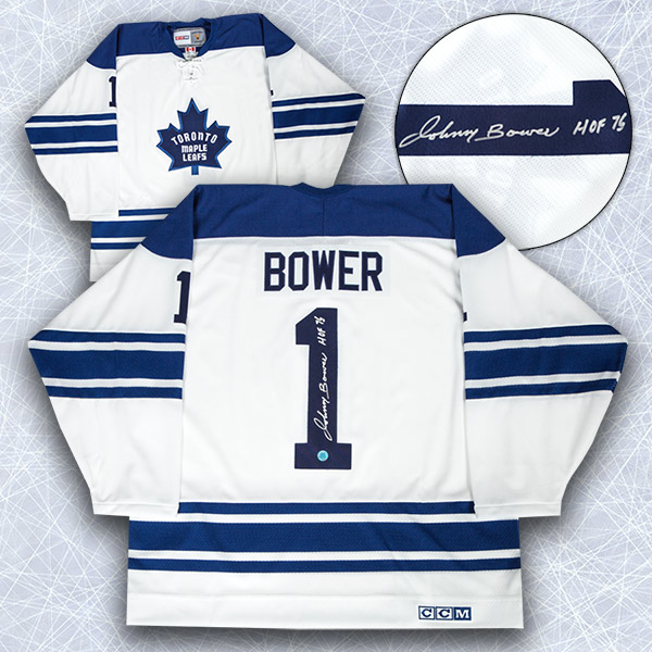 AJ SportsWorld BOWJ10400A Johnny Bower Toronto Maple Leafs Signed White 1967 Stanley Cup Retro Ccm Jersey