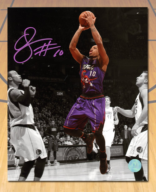 AJ SportsWorld DERD42902C Demar Derozan Toronto Raptors Autographed Retro Purple Spotlight 8 x 10 Photo