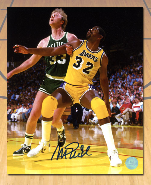 AJ SportsWorld JOHM41302A Magic Johnson Los Angeles Lakers Autographed Rivalry Vs Larry Bird 8 x 10 Photo