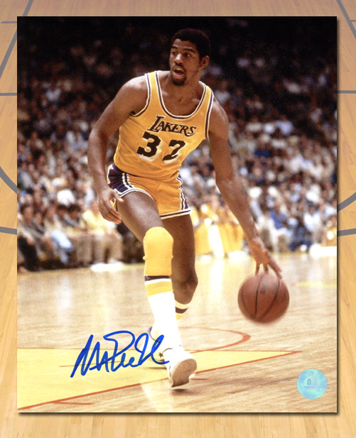 AJ SportsWorld JOHM41304A Magic Johnson Los Angeles Lakers Autographed Showtime Basketball 11 x 14 Photo