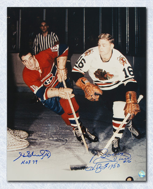 Bobby Hull verses Henri Richard Dual Signed Photo.