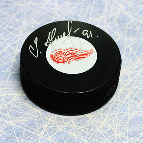 This is a hand signed puck by Sergei Fedorov. To protect your investment a Certificate Of Authenticity and tamper proof hologram from sportauthenti x is included. This is a stock photo. Please note that the autograph may be in a different location than the stock photo.